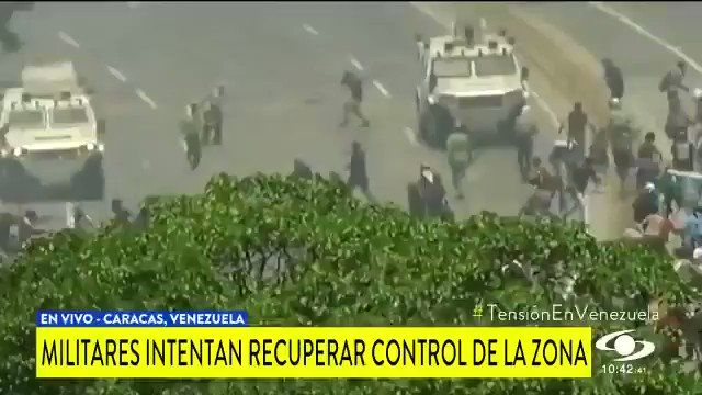 Miembros de la Guardia Nacional Bolivariana a bordo de una tanqueta militar arrollaron a un grupo de manifestantes que se concentraban en el distribuidor Altamira de Caracas.