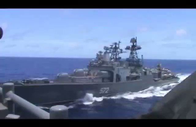 Un destructor de Estados Unidos y otro de Rusia pasan casi rozándose en el Océano Pacífico.