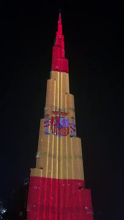 Spain shines today in @BurjKhalifa in Dubai and @AdnocGroup tower in Abu Dhabi #SpanishNationalDay #12deOctubre r> Spain in the Emirates pic.twitter.com/0tYhArsWez