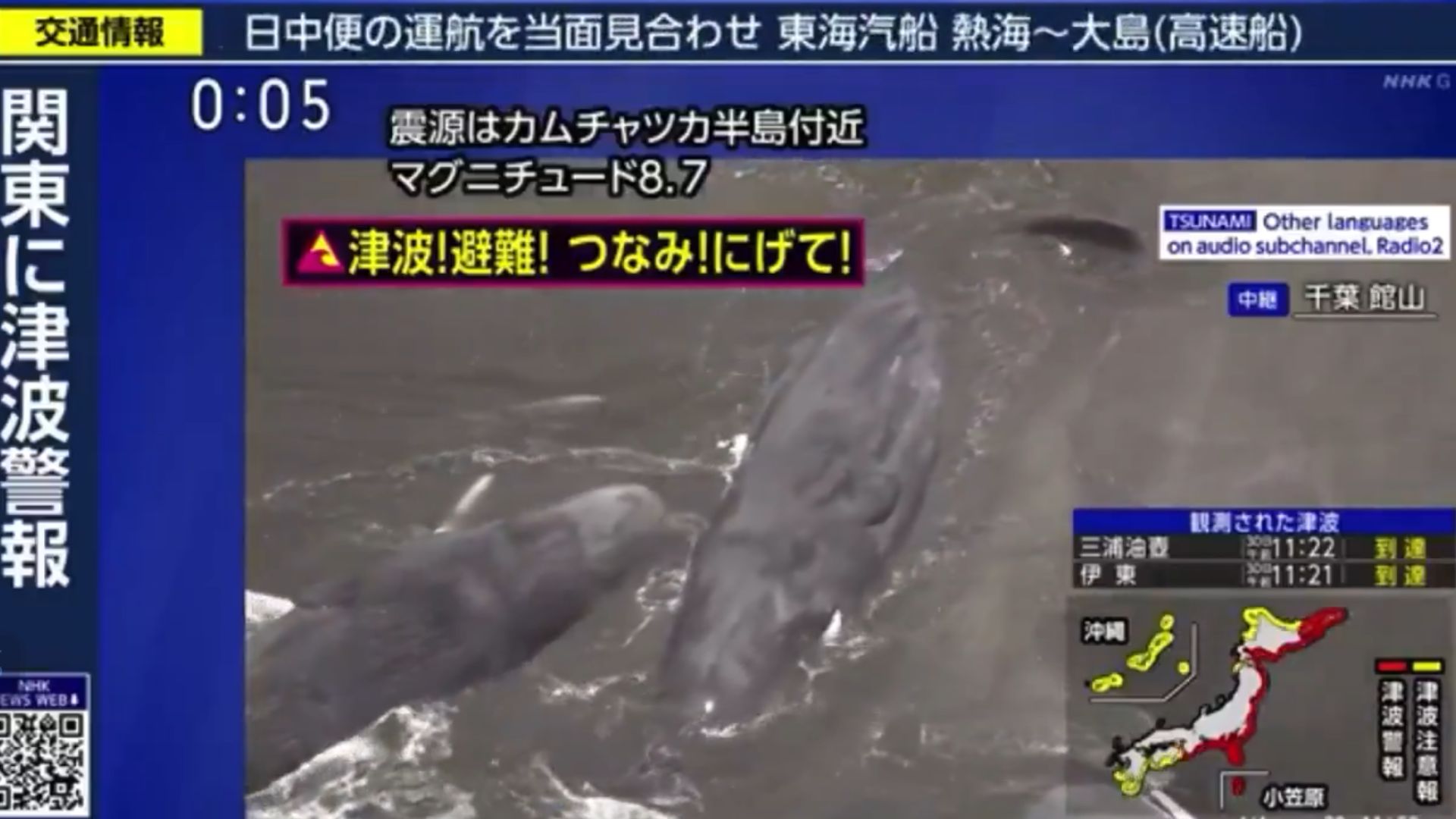 Cuatro ballenas varadas en una playa de Japón antes de la alerta de tsunami por terremoto en Rusia pic.twitter.com/mGBemtmXK3