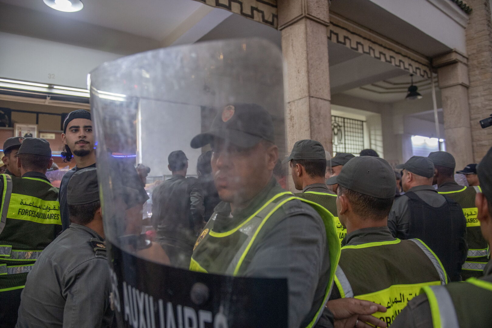 En la histórica plaza Bab el Had en Rabat, una de las ciudades más rebeldes contra el régimen, los antidisturbios desplegaron un fuerte dispositivo para bloquear el acceso de los jóvenes manifestantes que denuncian la mala situación del país. Tras realizar cánticos de protesta reclamando mejoras sociales y la dimisión del presidente del Gobierno, Aziz Ajanuch, los participantes fueron perseguidos y detenidos uno por uno por las fuerzas de seguridad, que los subieron a furgonetas policiales para trasladarlos a comisarías.