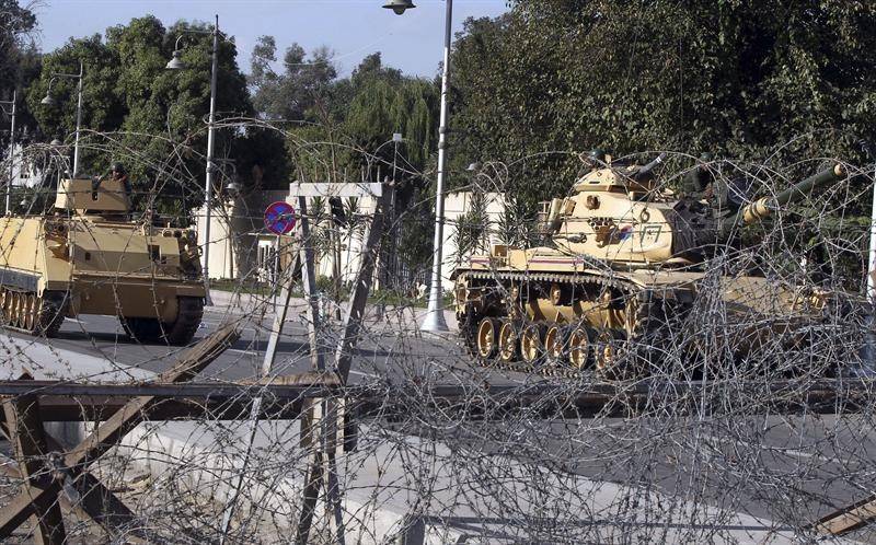 Entre gritos de "el Ejército y el pueblo son una sola mano", el mismo lema utilizado durante la revolución contra Mubarak, los opositores a Mursi celebraron esta decisión y algunos incluso se subieron a los carros blindados.