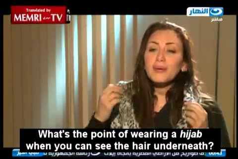 La periodista egipcia Riham Said reta a un imán y se quita el velo en directo. "No voy a continuar con esta farsa".