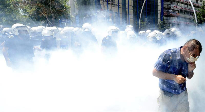 Una redada en el Colegio de Ingenieros, para evitar que fuera usado como improvisado ambulatorio, cañones de agua contra los concentrados en el distrito de Kurtulus y detenciones en el hotel Ramada fueron algunas de las escenas vividas hoy en la ciudad del Bósforo.