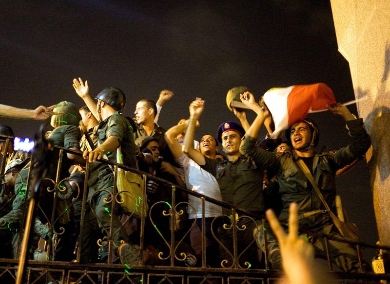 Una explosión de júbilo inundó la plaza Tahrir tras el anuncio del Ejército egipcio, que suspendió la Constitución y declaró al presidente del Tribunal Constitucional como nuevo mandatario provisional del país en lugar del islamista Mohamed Mursi