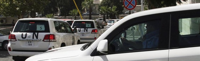 Vehicle of the @UN #Syria #ChemicalWeapons team hit by unidentified snipers. More details: http://t.co/h9Hpx00K6p