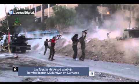 Dos noches de combates y bombardeos callejeros en Siria se han sucedido este domingo y lunes en Siria mientras las fuerzas de Assad también bombardearon Mudamiyah en Damasco.