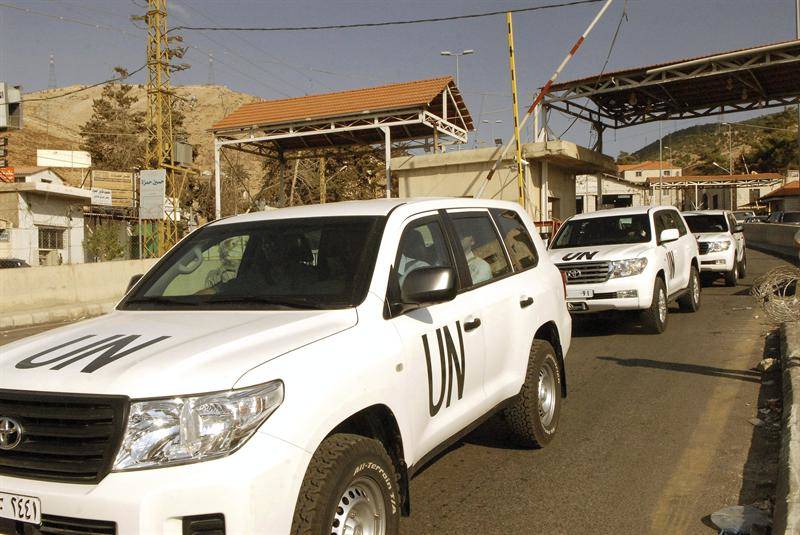 Los inspectores de la misión de la ONU encargada de comprobar el arsenal químico del régimen de Bashar al Asad entraron este martes en Siria por carretera, procedentes del Líbano.