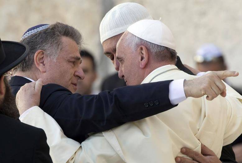 Francisco también quiso hablar de la reconciliación entre judíos y cristianos, relación que durante siglos ha sido distante. En el Gran Rabinato de Israel, en el que se reunió con los dos grandes rabinos, el askenazita y el sefardita, destacó cómo ha evolucionado la relación entre ambas religiones. "Este camino de amistad -dijo Francisco- representa uno de los frutos del Concilio Vaticano II". Además, añadía que estaba "convencido de que cuanto ha sucedido en los últimos decenios en las relaciones entre judíos y católicos ha sido un auténtico don de Dios, una de las maravillas que Él ha realizado, y por las cuales estamos llamados a bendecir su nombre".