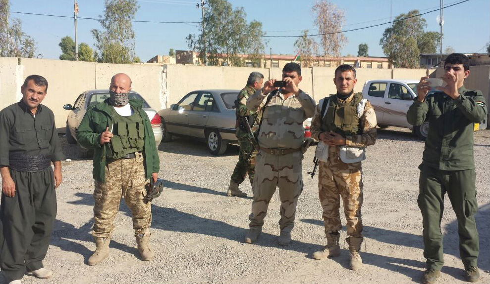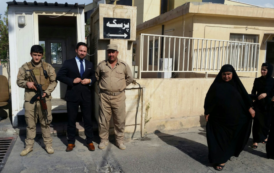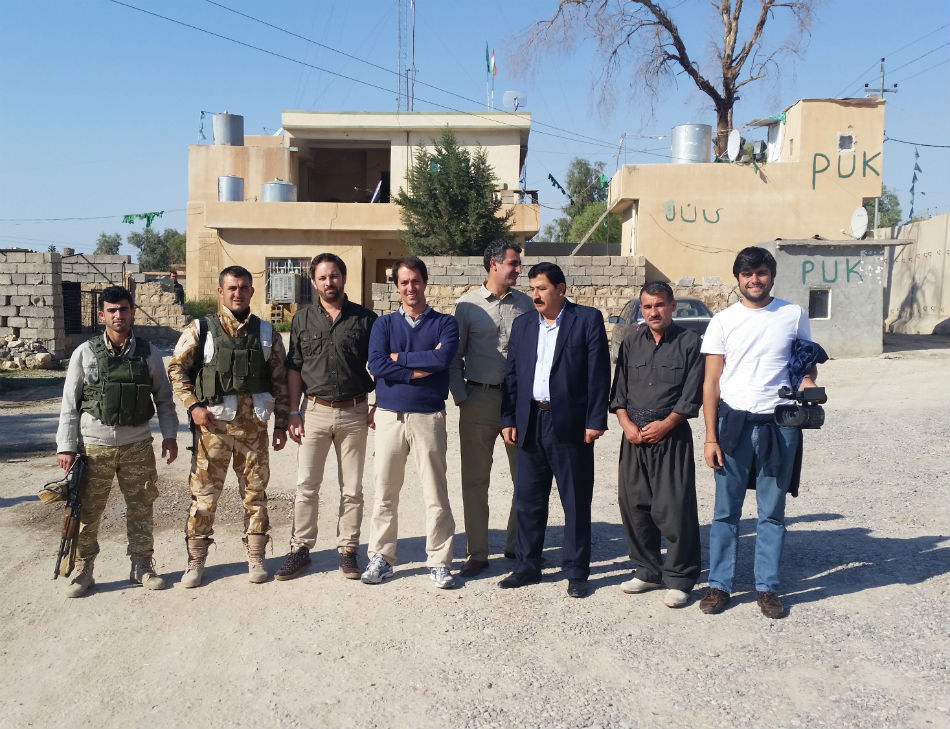 Abascal, en Magmur junto a representantes locales de la UPK (Unión Patriótica del Kurdistán). Esta localidad ha sido recientemente arrebatada al Estado Islámico, cuyas posiciones se encuentran a 8 kilómetros en la actualidad.