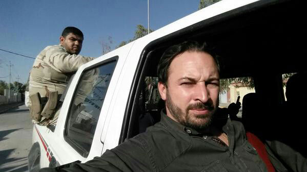 Abascal, rumbo al cuartel de las 'peshmergas' escoltado por guerrilleros kurdos.