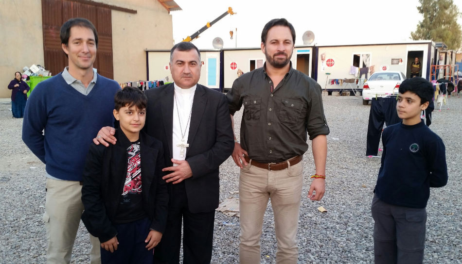 Abascal, con el arzobispo de la diócesis de Erbil, en un campamento de refugiados cristianos.