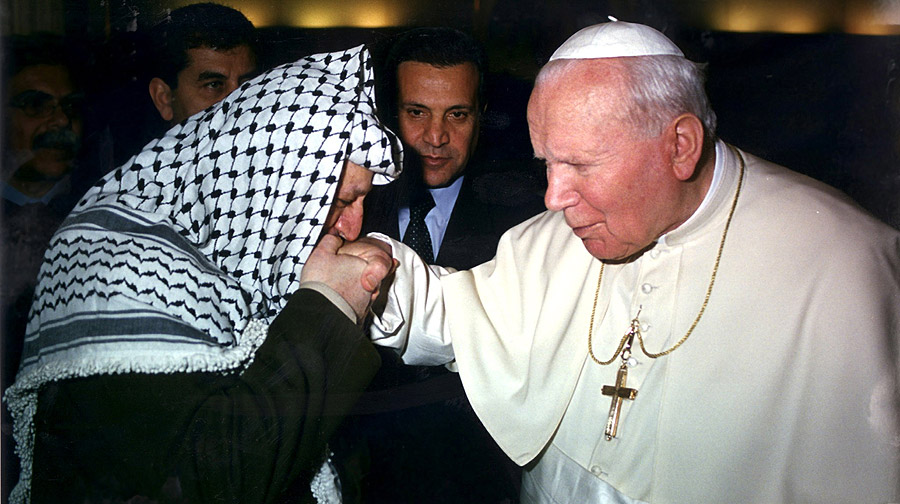 Arafat besando la mano de Juan Pablo II en febrero del año 2000. El líder palestino siempre encontró casi todas las puertas internacionales abiertas