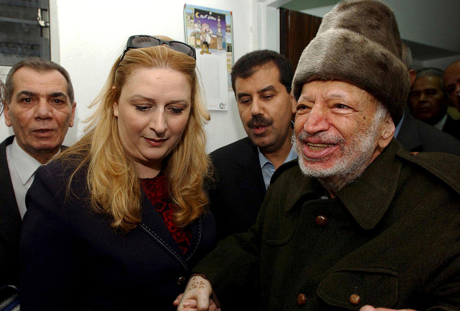 Arafat con su esposa, que diez años de la muerte del líder palestino todavía vive en Francia y ha sido acusada de corrupción hasta por la propia ANP. La salud de Arafat estaba ya muy deteriorada en ese momento y su viuda ha llegado ha decir que fue envenenado con polonio, pero lo cierto es que incluso análisis practicados años después de su muerte han descartado el envenenamiento
