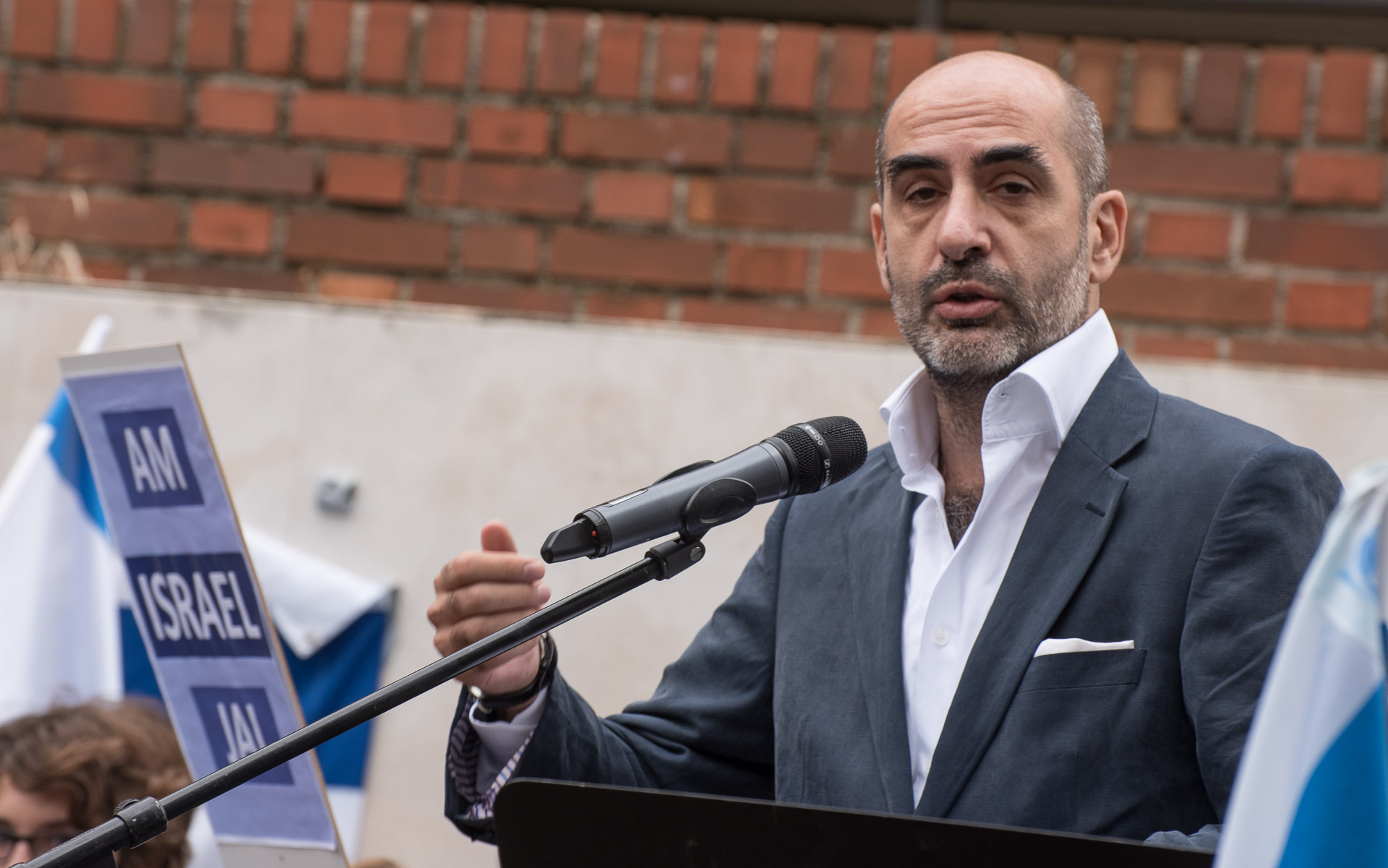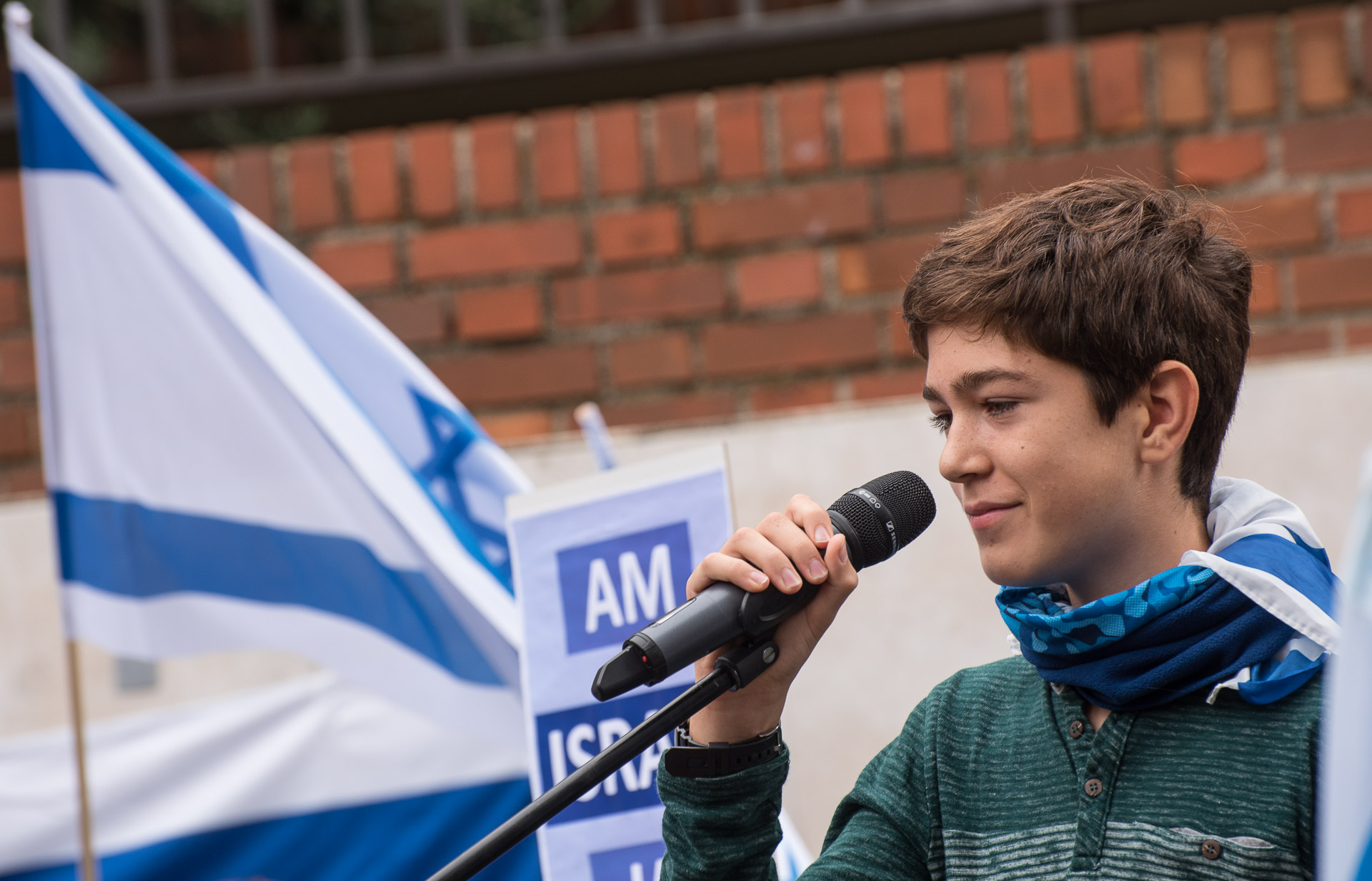 Un joven ha cantado una canción tradicional judía rodeado de banderas de Israel