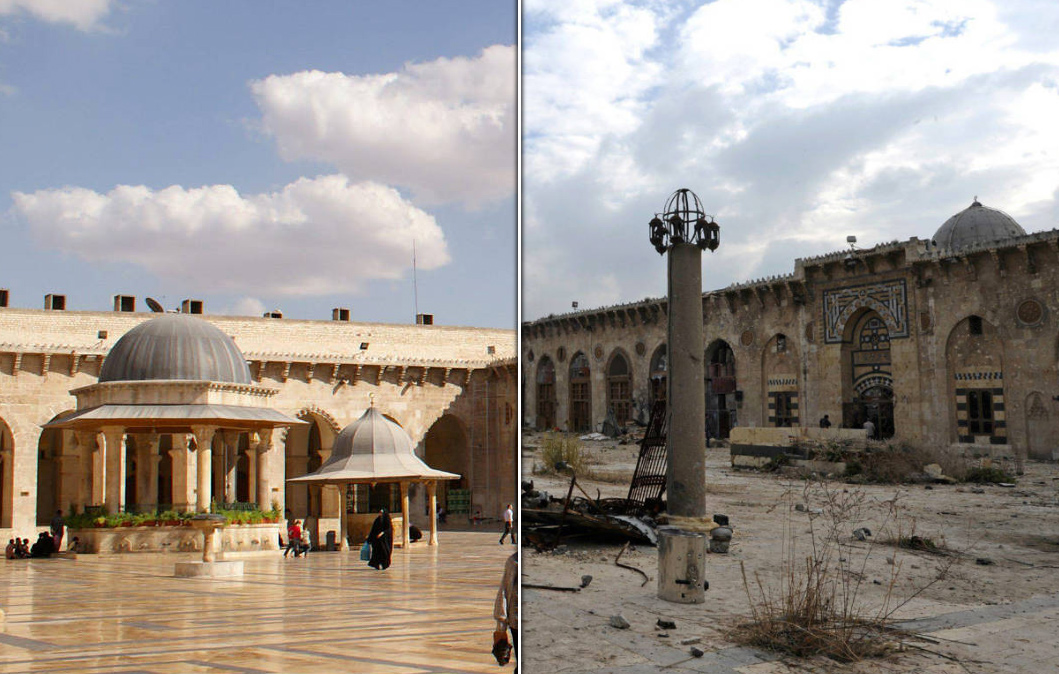 Alepo es la mayor ciudad de Siria (con más de 2 millones de habitantes), por encima de Damasco. Desde el inicio de la Guerra Civil de Siria en 2011, Alepo se ha convertido en campo de batalla entre fuerzas gubernamentales de Al Asad y rebeldes que han provocado la devastación de la ciudad y el éxodo de gran parte de sus habitantes. Casi seis años después del inicio de la guerra son dramáticas e impactantes las imágenes comparando varios lugares emblemáticos de esta ciudad antes y después de la guerra.
