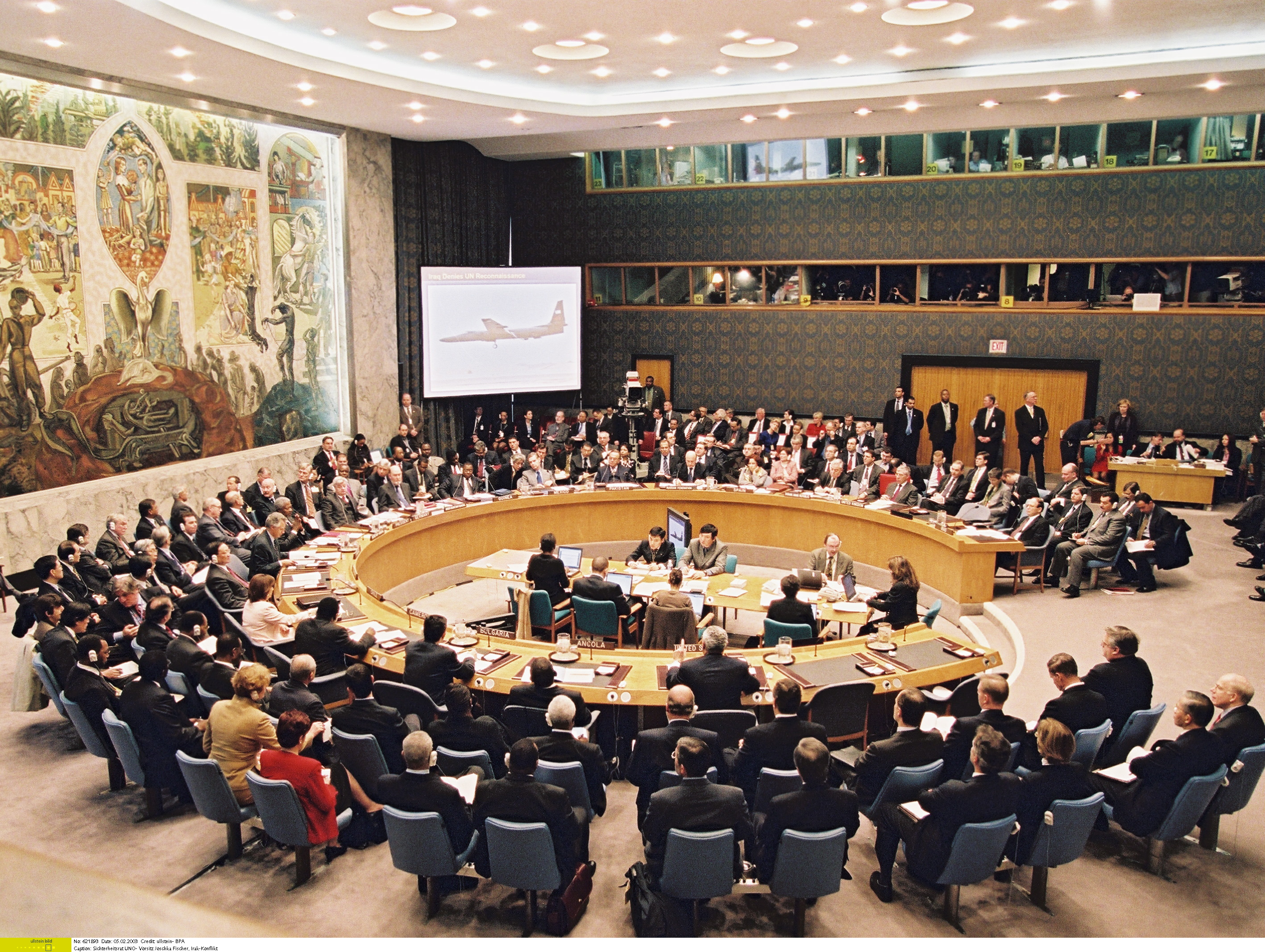La sesión del Consejo de Seguridad de la ONU del 5 de febrero fue un momento esencia, Colin Powell -en aquel momento máximo responsable de la diplomacia americana- expuso las pruebas de la presencia de armas de destrucción masiva, pero no logró el apoyo del Consejo.