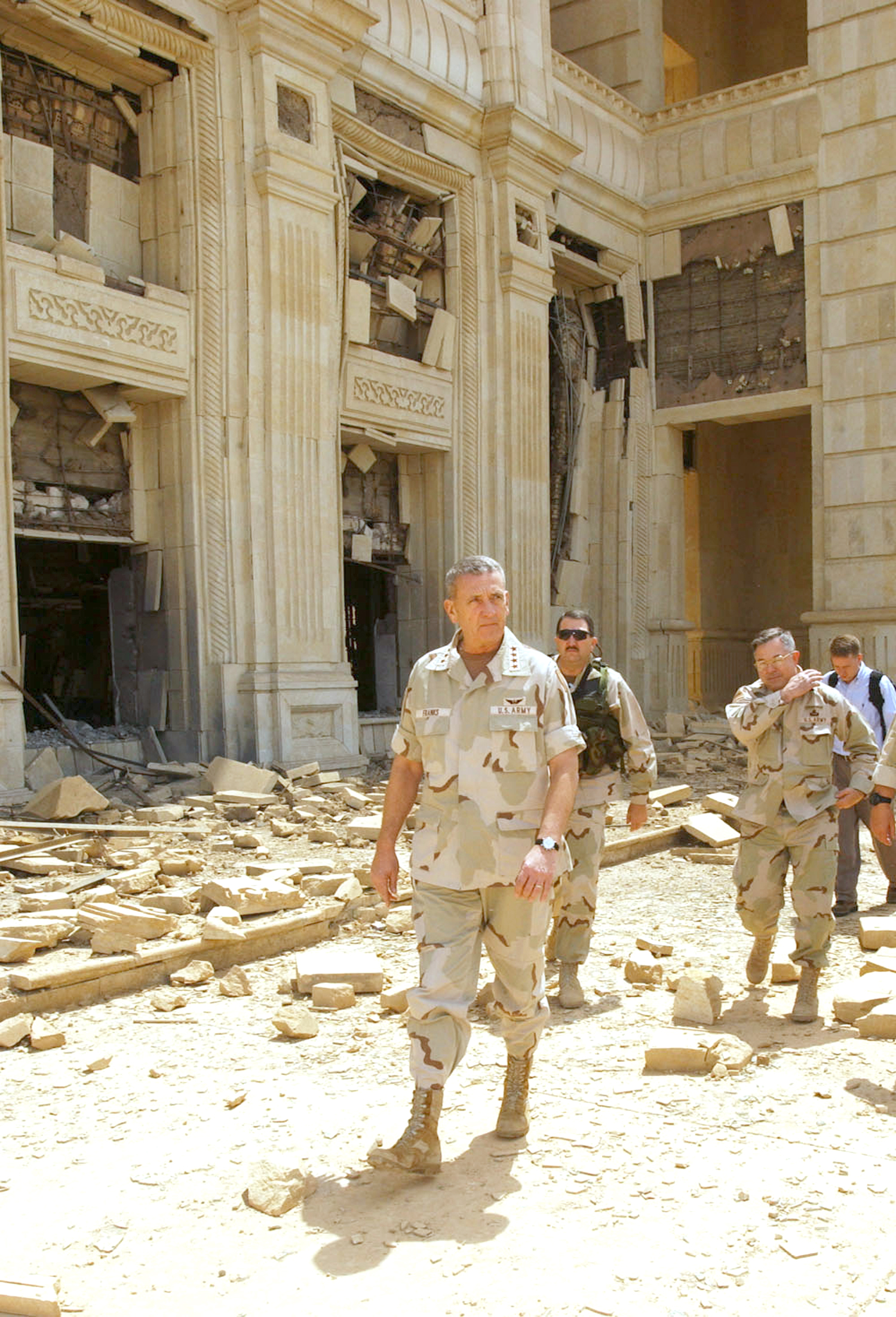 Geoge Bush declaró que se había llegado al final de la contienda pues su ejército había alcanzado todos sus objetivos. En ese momento se iniciaron dos procesos: por un lado Estados Unidos iniciaba la reconstrucción del país mientras mostraba diversas pruebas de la riqueza de Sadam Hussein -en la imagen, el comandante americano Tommy Franks, visitando uno de los palacios del sátrapa- pero sin encontrar las armas de destrucción masiva. Por el otro, los restos del ejército de Sadam y otros grupos empezaban una serie de atentados terroristas y una guerra de guerrillas en algunas zonas con la que pronto fue posible constatar que, en realidad, estábamos en otra fase de la guerra.