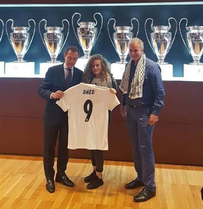 La razón es que este acto, que contó con la participación de Emilio Butragueño, fue la entrega de una camiseta a Ahed Tamimi, la adolescente palestina que ha saltado a la fama internacional al ser condenada a ocho meses de prisión por abofetear a soldados israelíes en repetidas ocasiones.