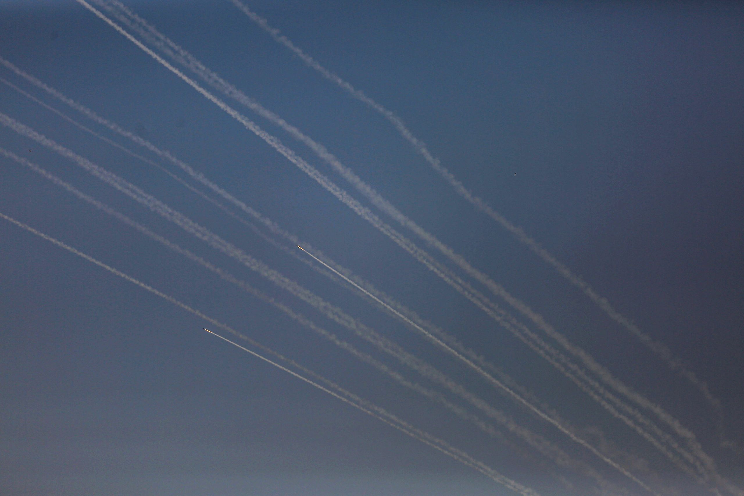 El momento en el que varios cohetes son lanzados desde Gaza hacia objetivos israelíes.