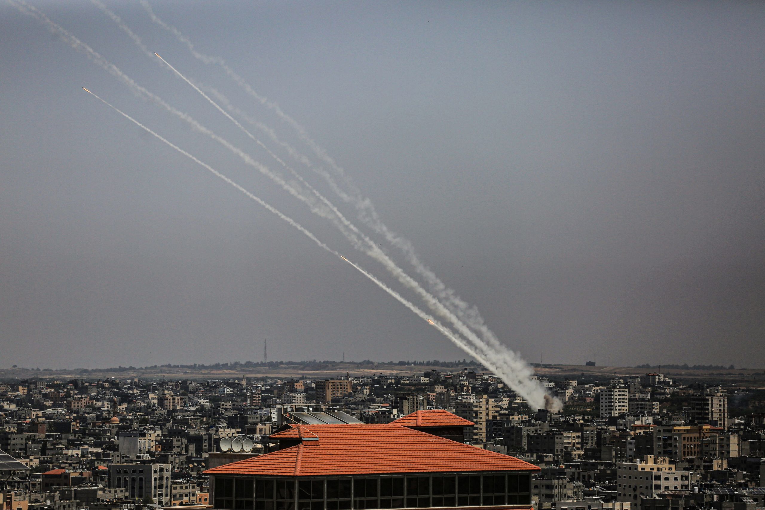 Varios cohetes disparados desde Gaza contra ciudades israelíes en respuesta a los ataques aéreos israelíes en la Franja de Gaza.