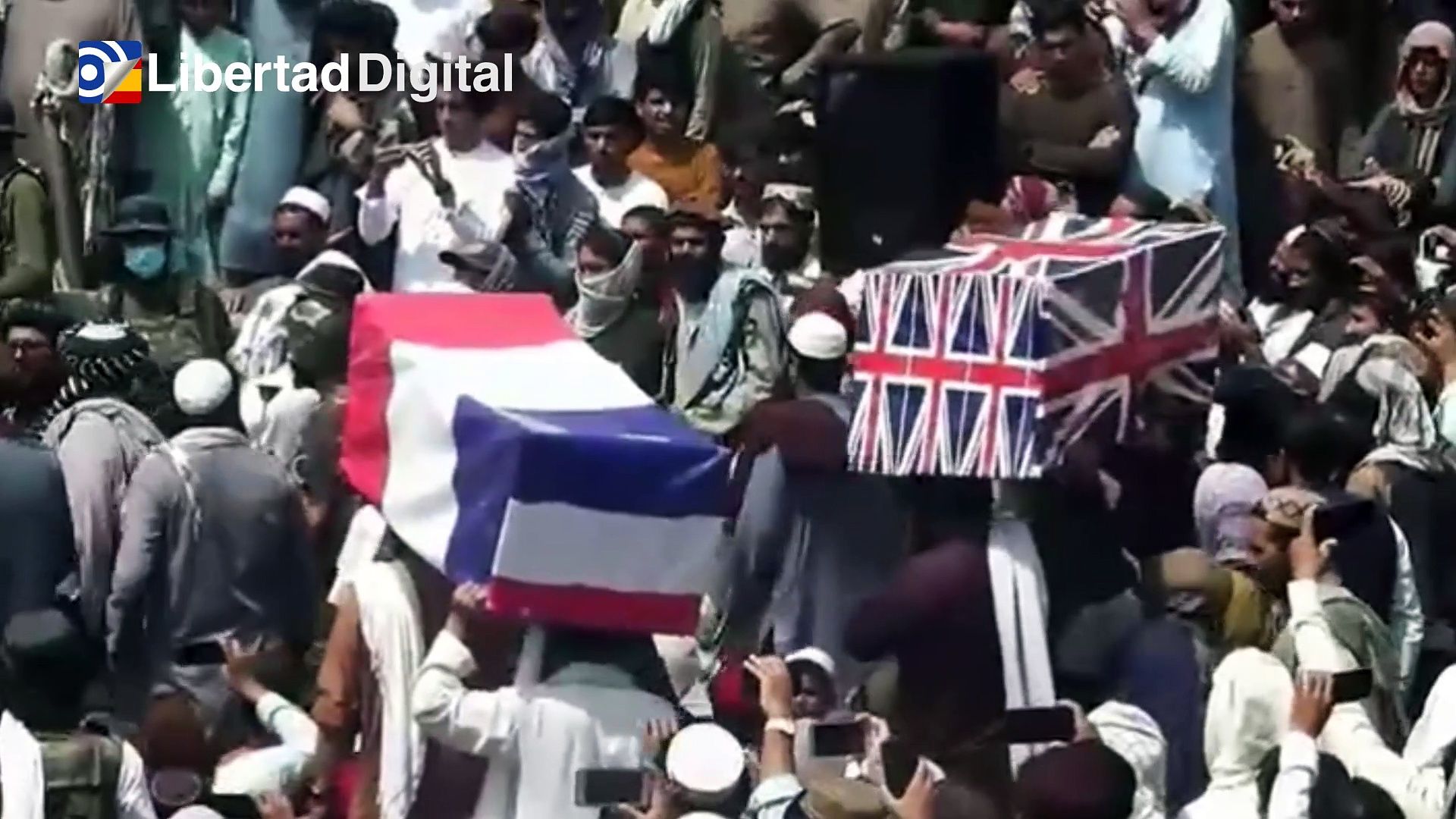 Simpatizantes de los talibanes celebran en la ciudad de Khost, la retirada de las tropas estadounidenses con un "funeral simulado". Cientos de personas han cargado con féretros que portaban banderas de occidente, como Francia, Reino Unido o Estados Unidos, simbolizando el fin de una guerra que ha durado 20 años.