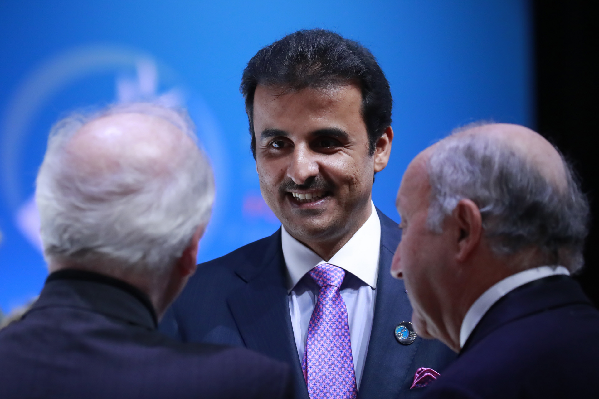 Tal y como hemos visto hasta ahora, el camaleónico jeque Tamim bin Hamad Al Thani tiene la capacidad de adaptarse a cada situación para no desentonar entre los mandatarios de Occidente. Aquí le vemos manteniendo una animada charla durante la celebración del Foro de Paz de París, el 11 de noviembre de 2018.