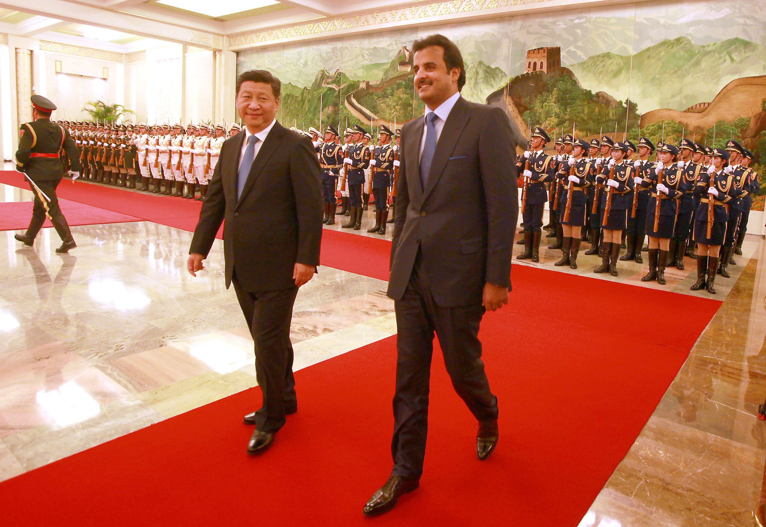 El presidente de China, Xi Jinping, recibió al jeque Tamim en el Gran Salón del Pueblo en Beijing el 3 de noviembre de 2014. Casualidad o no, ambos lucieron un look prácticamente idéntico: traje de chaqueta gris oscuro, camisa blanca, corbata azul y zapatos de vestir color negro.