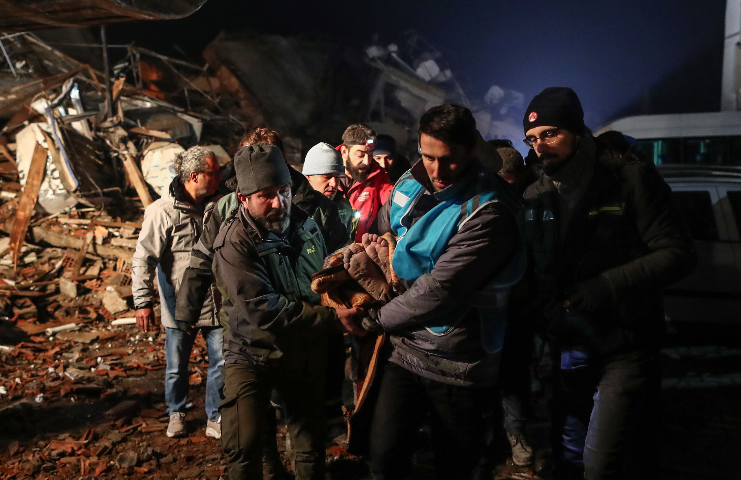 Trasladan el cuerpo de un hombre rescatado más de un día después del terremoto de Turquía.