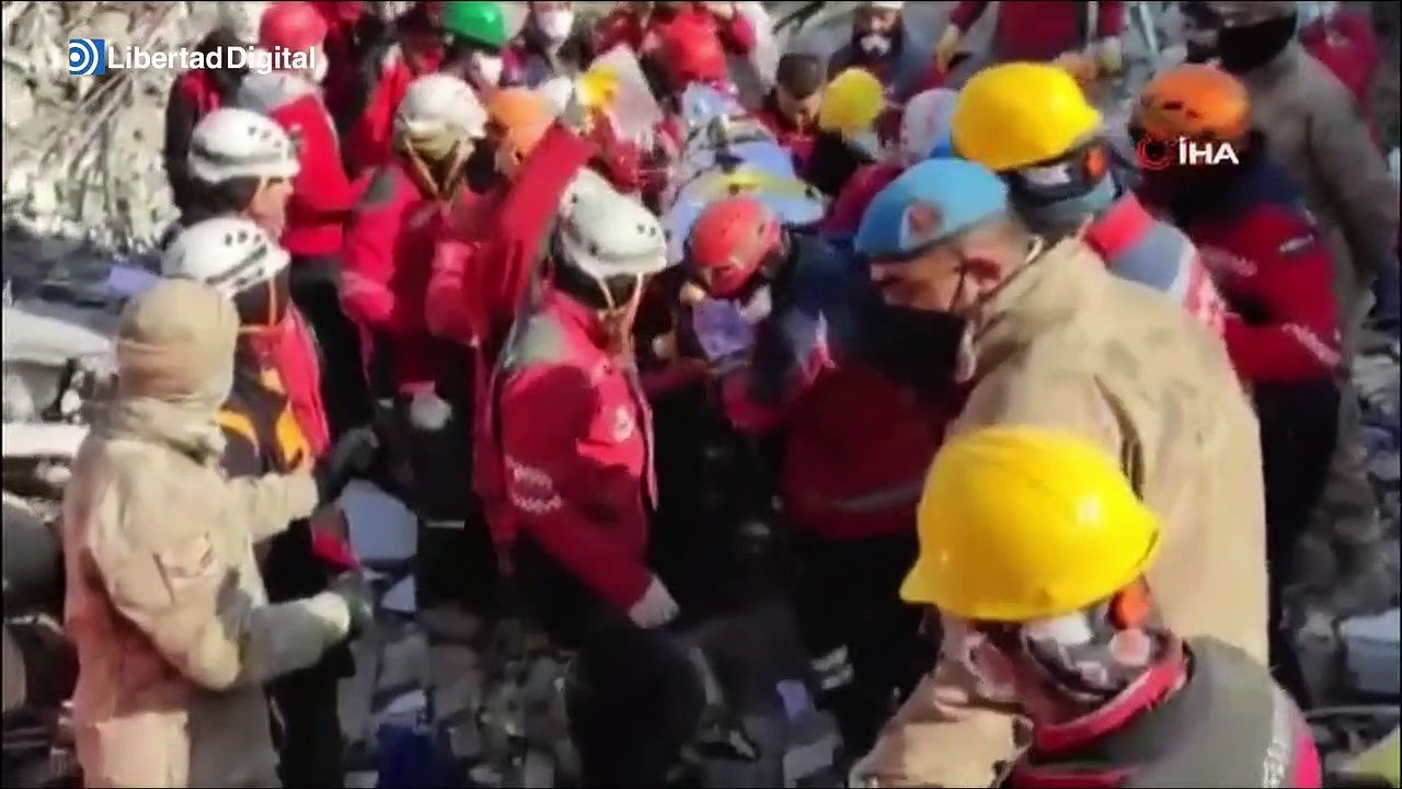 222 horas o lo que es lo mismo, más de nueve días. Es el tiempo que ha pasado una mujer de 42 años bajo los escombros en la provincia de Kahramanmaras, el epicentro del terremoto. Ha pasado un infierno, casi diez días sin comida ni agua, sepultada entre los restos de su edificio. Los rescatistas llevan tiempo trabajando contrarreloj para sacar a los últimos supervivientes. Así que el alivio de saber que hoy lo han conseguido desencadena abrazos, llantos y felicitaciones. La mujer ya se encuentra en el hospital. Pese a la tragedia, es una de las afortunadas. En Turquía han muerto más de 35.000 personas en lo que ya es el desastre más mortífero de su historia.