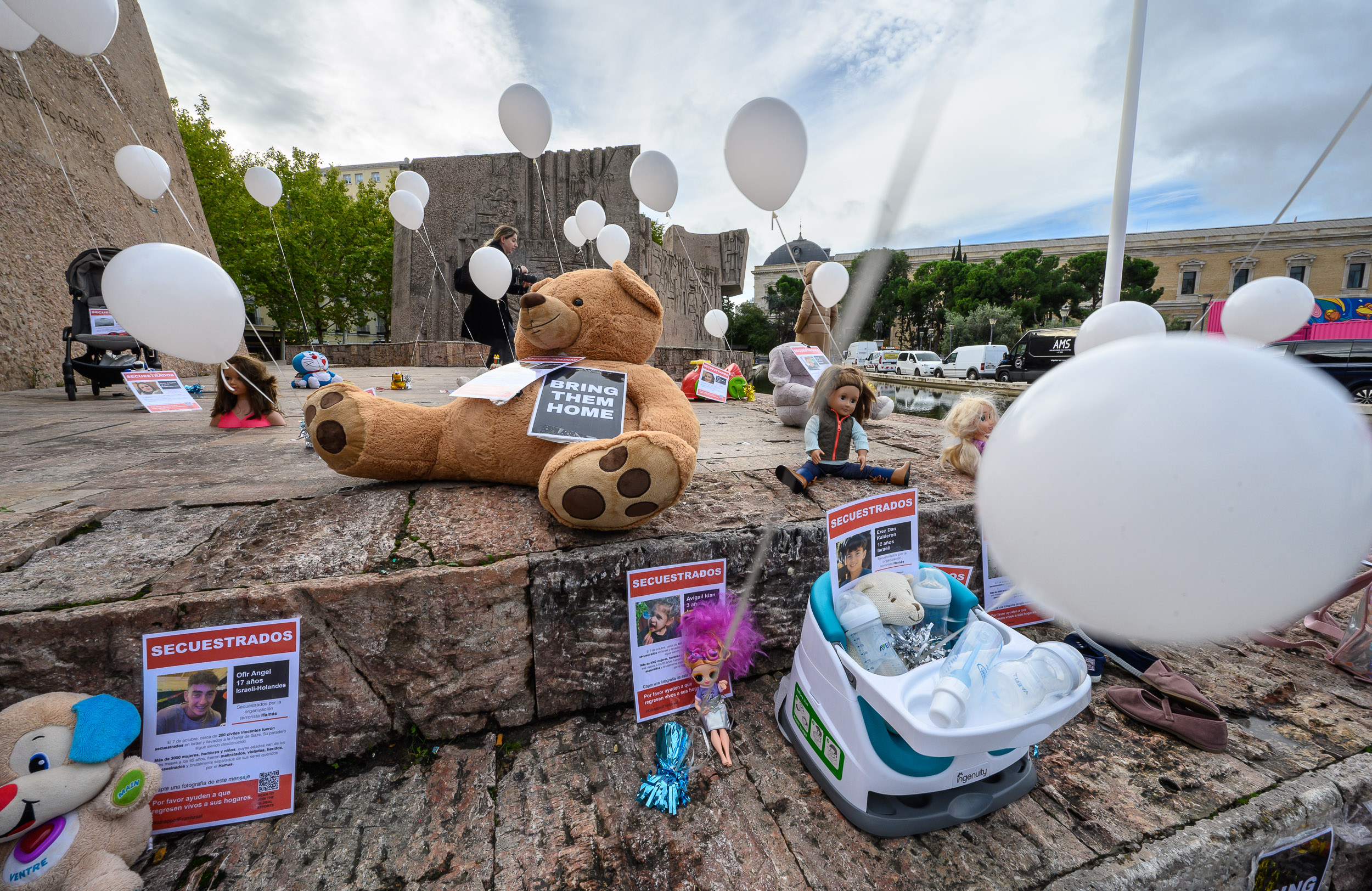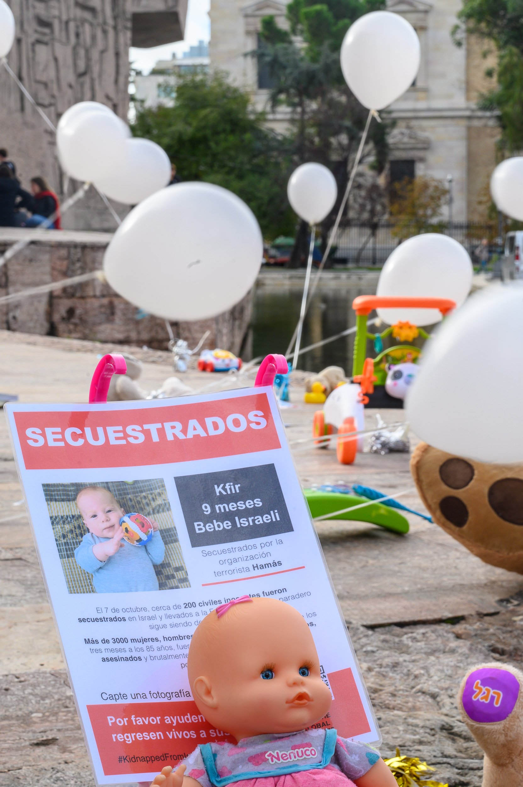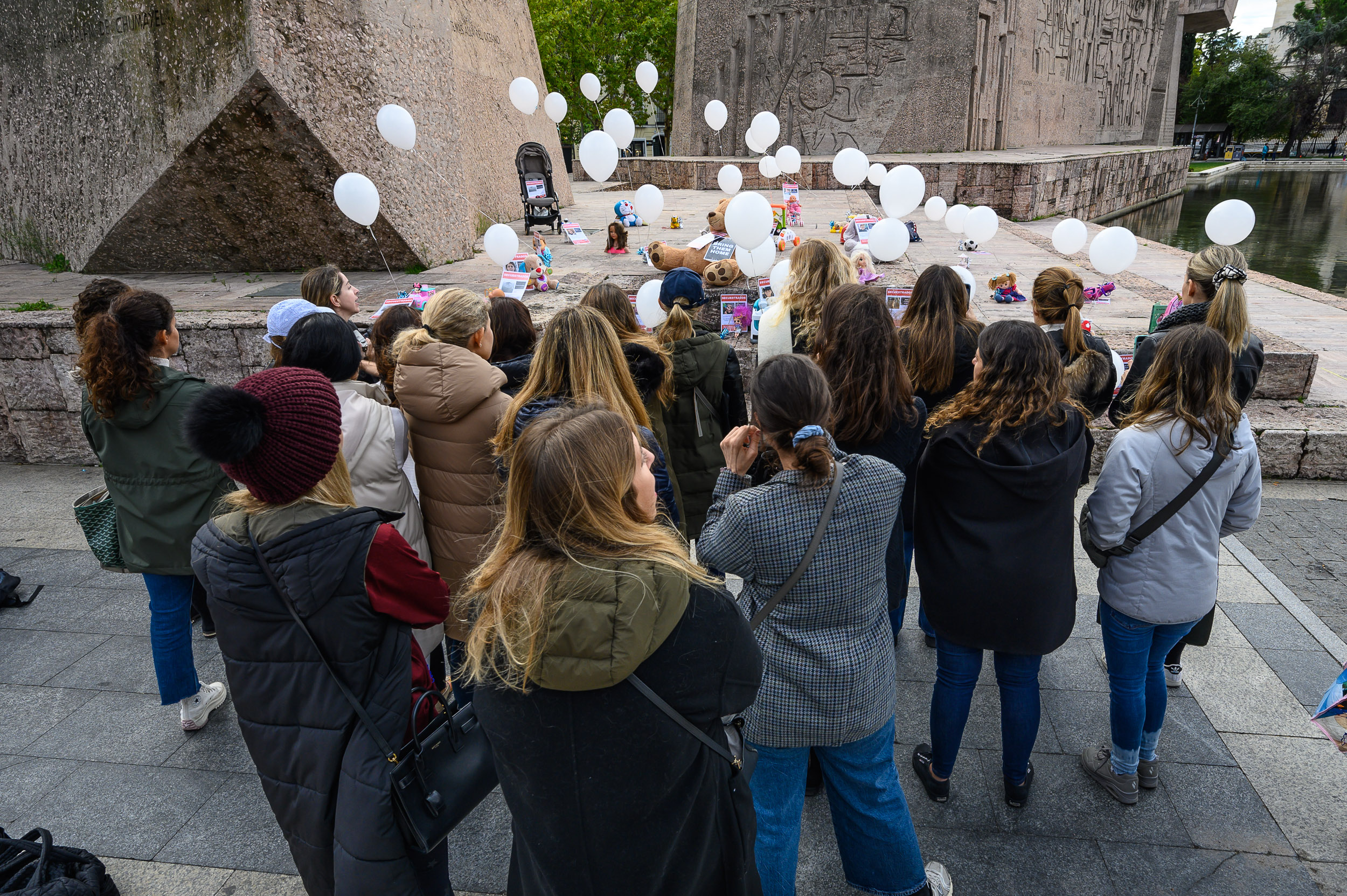Madres españolas recuerdan con juguetes y globos a las decenas de niños secuestrados por Hamás
