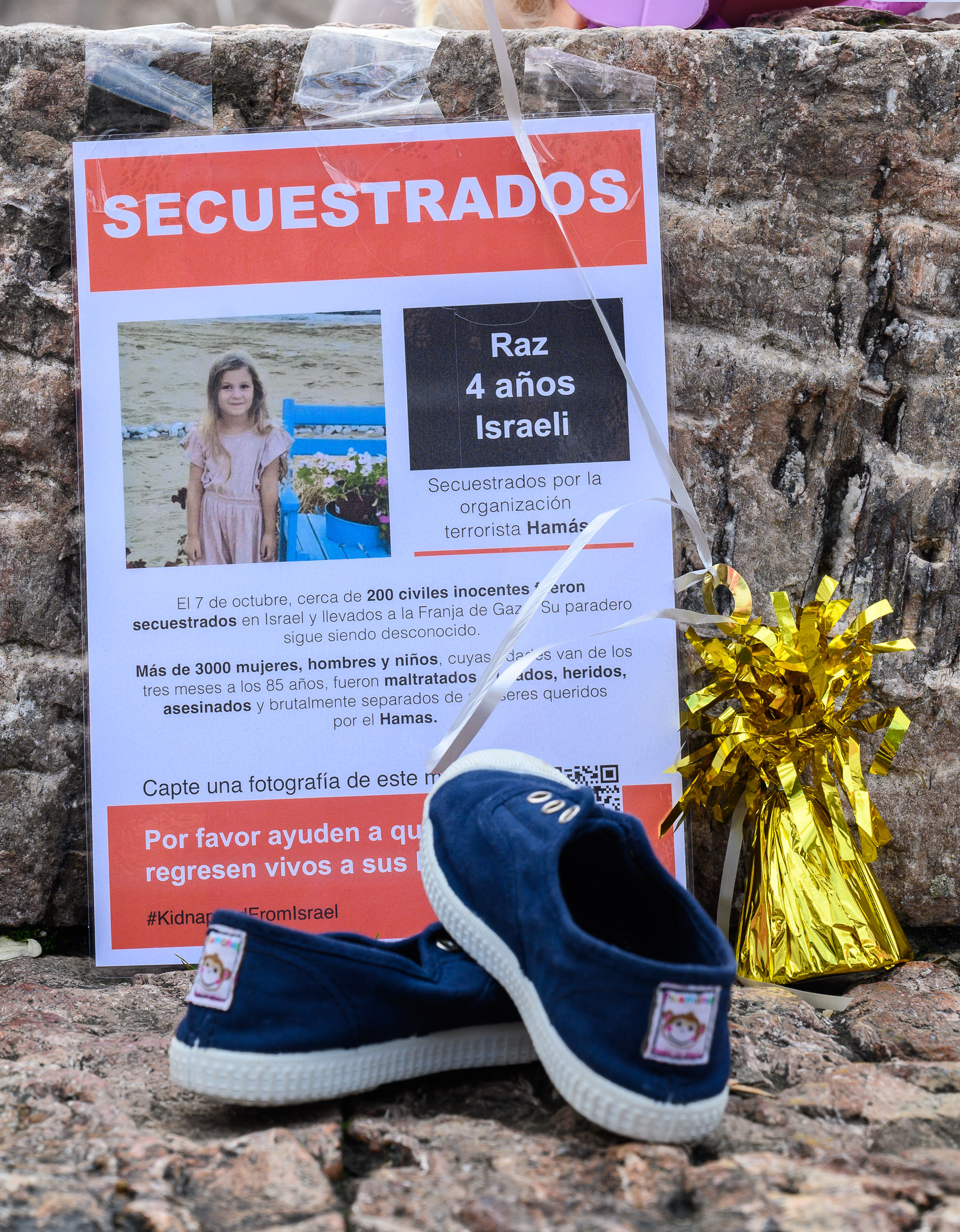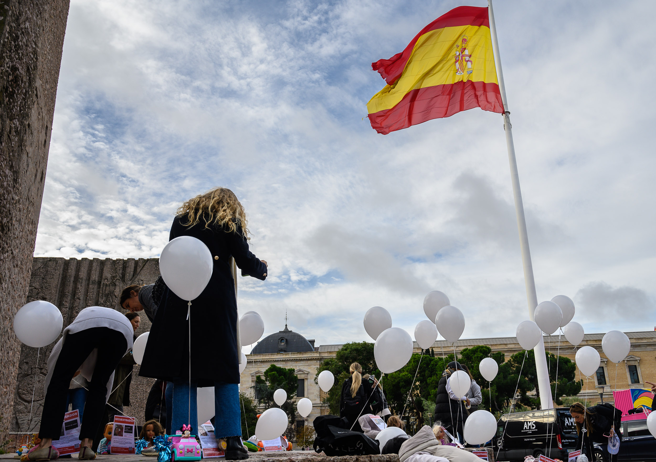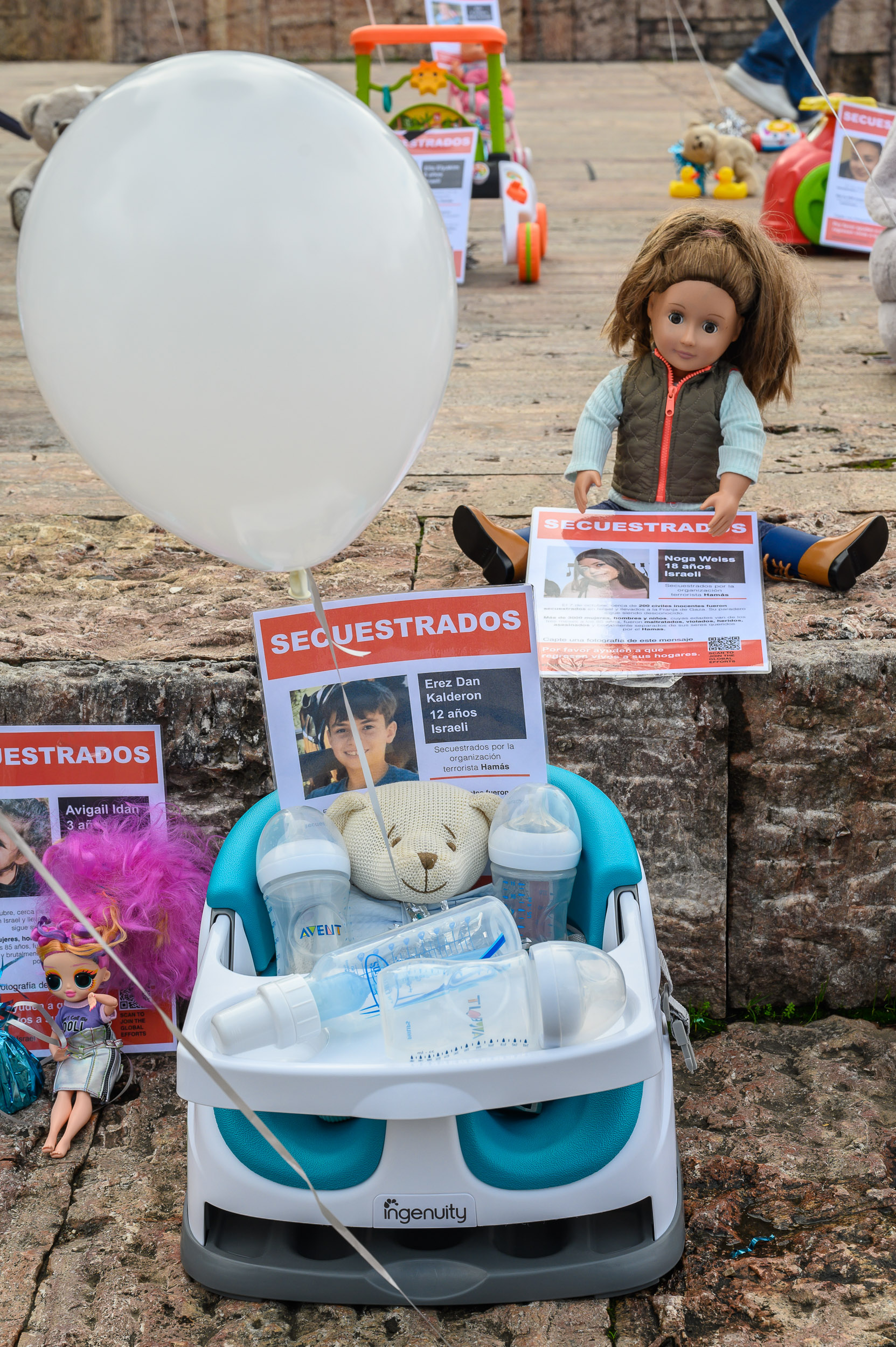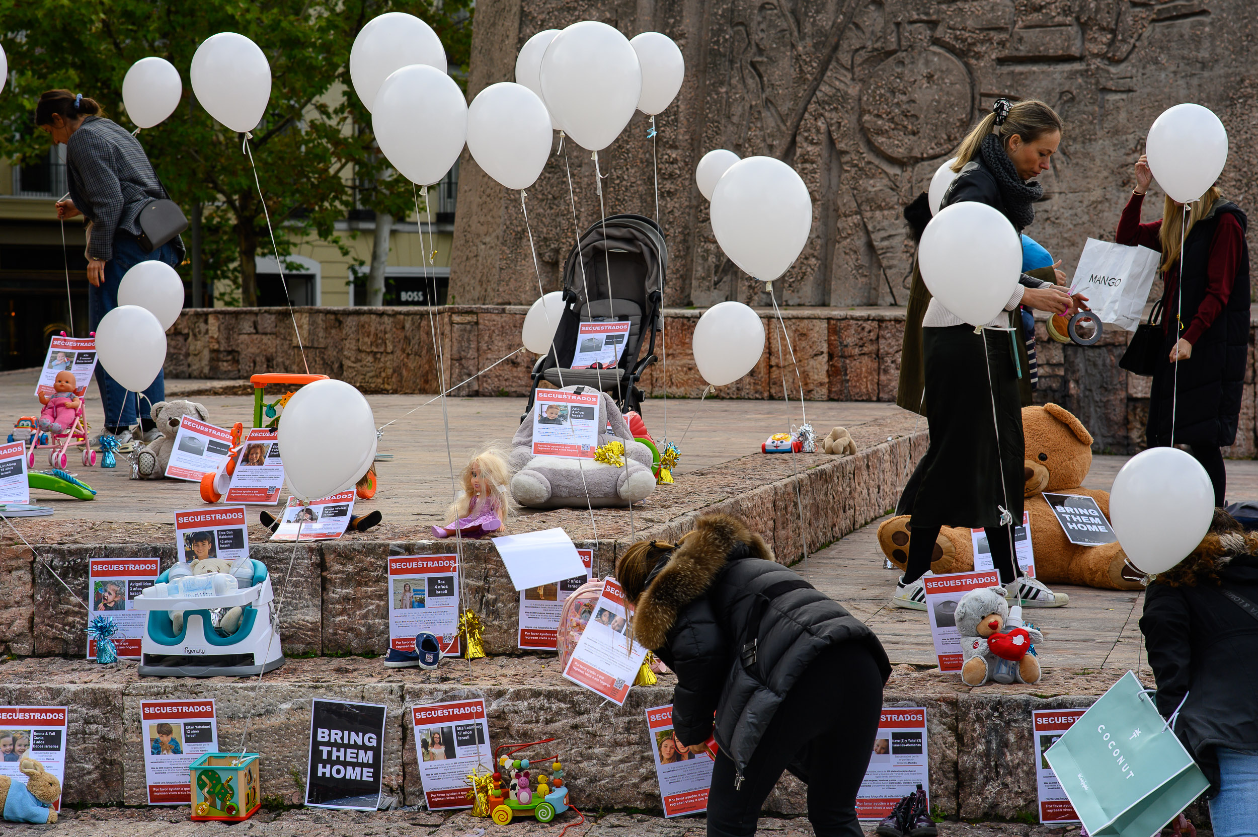 Madres españolas recuerdan con juguetes y globos a las decenas de niños secuestrados por Hamás