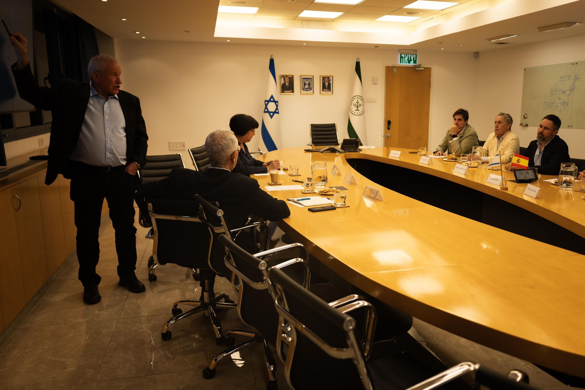 Según informa el partido a los medios, Abascal ha acudido al país con una delegación de Vox integrada por el eurodiputado Hermann Tertsch, el director de la fundación Disenso, Jorge Martín Frías, que han mantenido un encuentro con el ministro israelí de los Asuntos de la Diáspora y Lucha contra el Antisemitismo, y exjefe del Shin-Bet Amichai Chikli, y con el ministro de Agricultura y miembro del gabinete de Guerra de Israel, Avi Dichter.