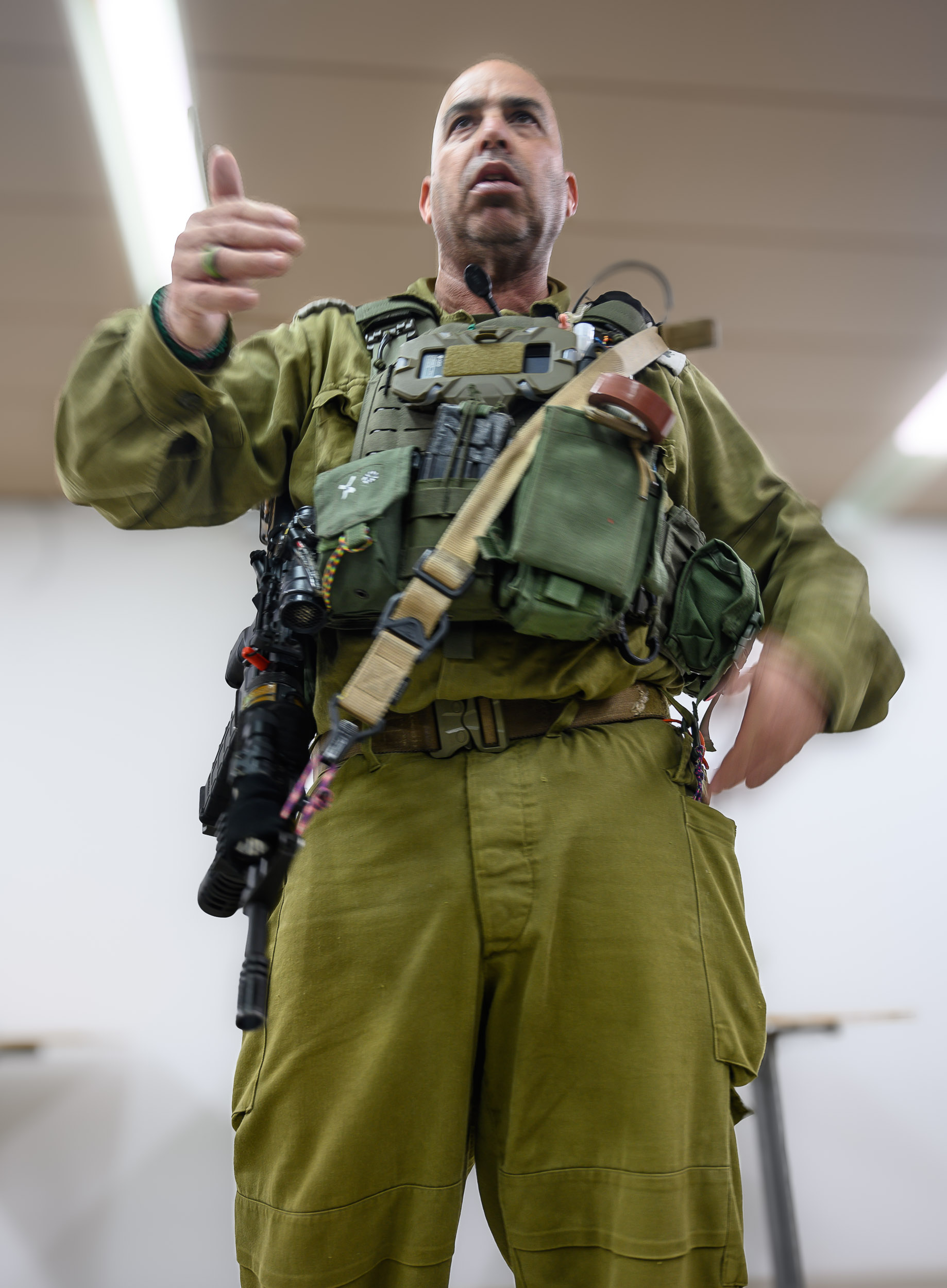 A sólo unos pocos kilómetros un poco más al sur y en otro kibutz prácticamente vacío llamado Cabri, el teniente coronel Dolan, que pide que no usemos su apellido, se nos presenta embutido en una equipación completa –hasta le cuelga de una parte del traje un rollo de cinta adhesiva– y nos cuenta que es un reservista y hace sólo unos meses estaba trabajando en su propia empresa.