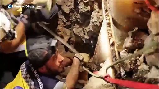 Rescatan en Siria a un niño tras permanecer atrapado durante horas dentro de un pozo.