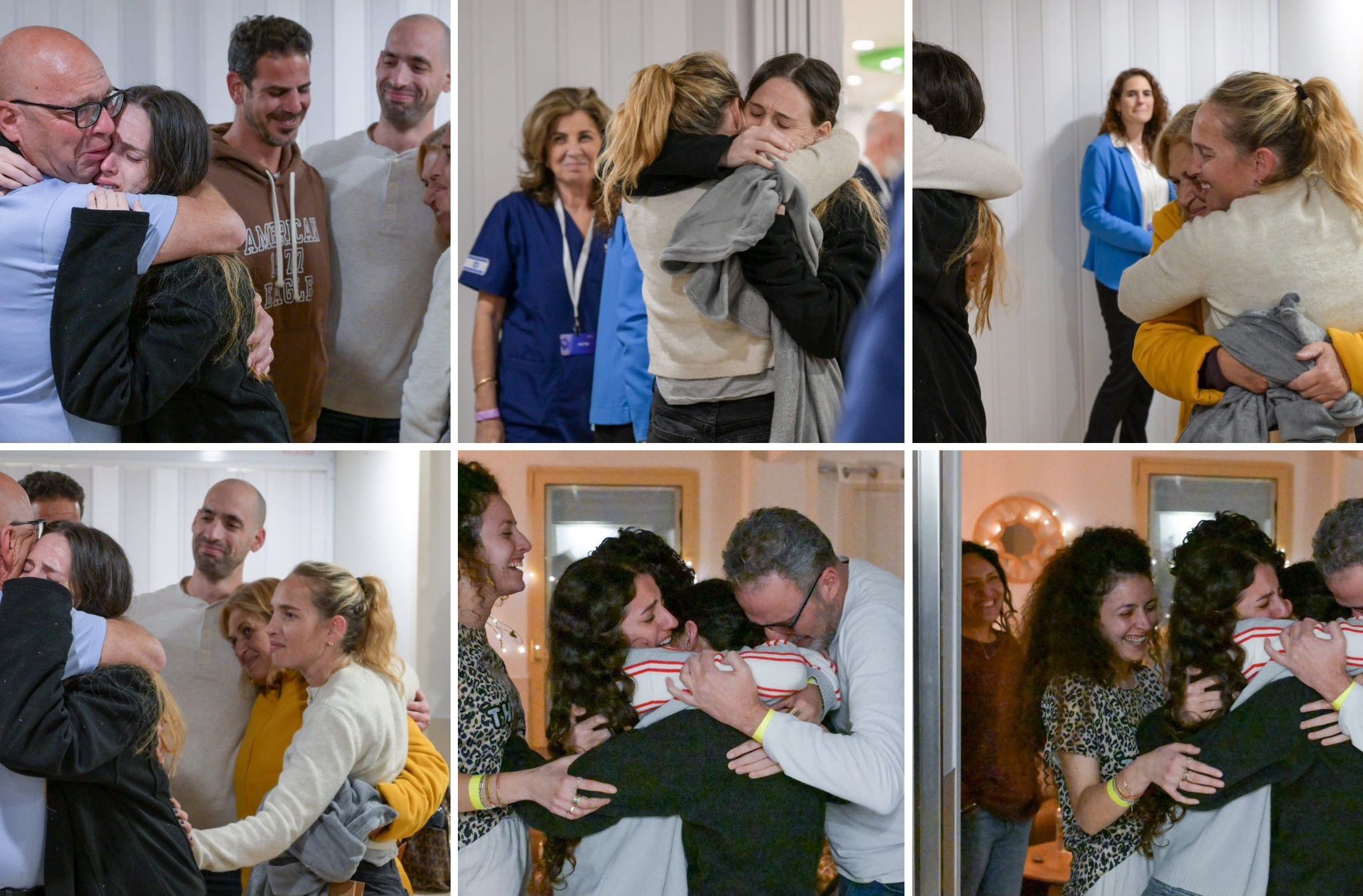 Desde estas instalaciones militares fueron trasladadas en helicóptero al Hospital Tel Hashomer, a las afueras de Tel Aviv, donde estaban el resto de sus familiares. El personal sanitario certificó que su estado es lo bastante bueno para permitirles reunirse con sus familias.