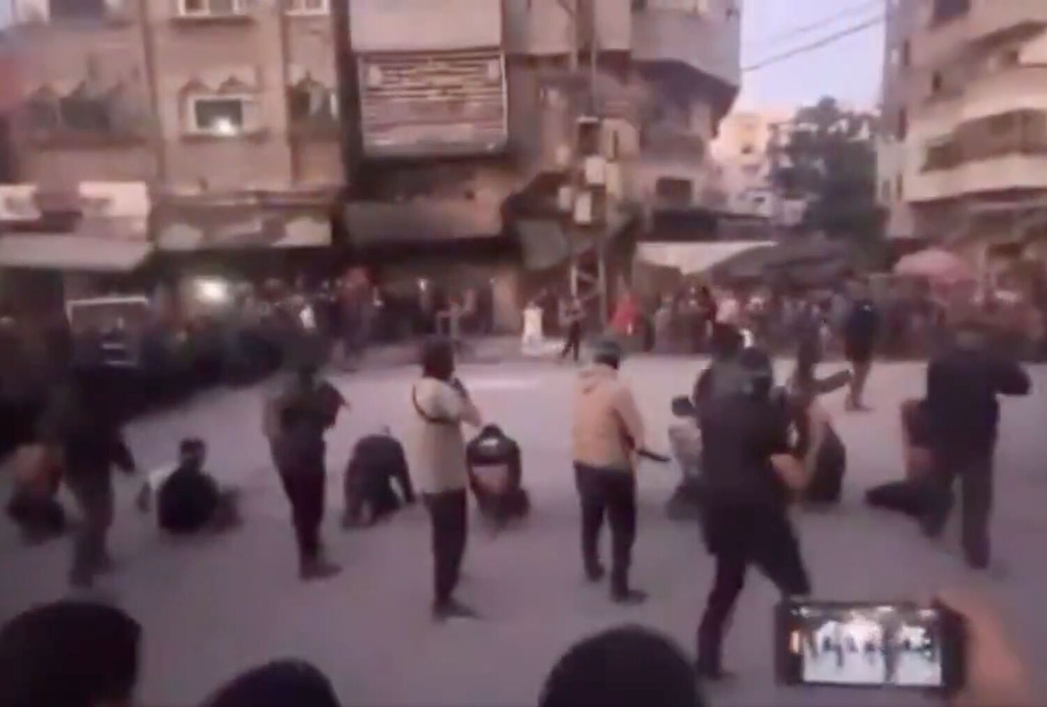 Las imágenes muestran el asesinato a sangre fría de ocho personas que son arrastradas por el asfalto en una calle de Gaza –concretamente, se han geolocalizado en el cruce de las calles Gamal Abdel Nasser y Giza, en el centro de la ciudad– hasta que son arrodillados y, tras unos segundos de tensa espera, asesinados con tiros en la nuca. Algunos, además, son rematados una vez han caído al suelo.