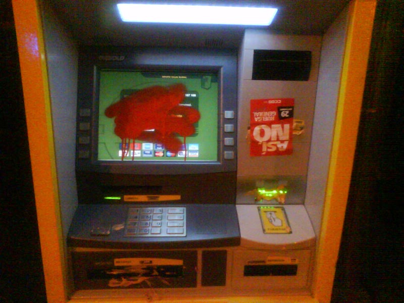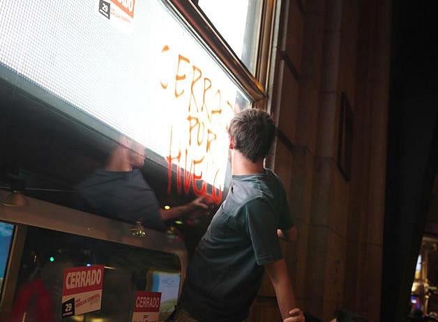 Los cajeros también han sufrido el vandalismo por parte de algunos huelguistas.
