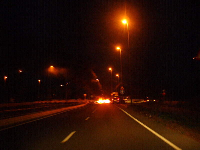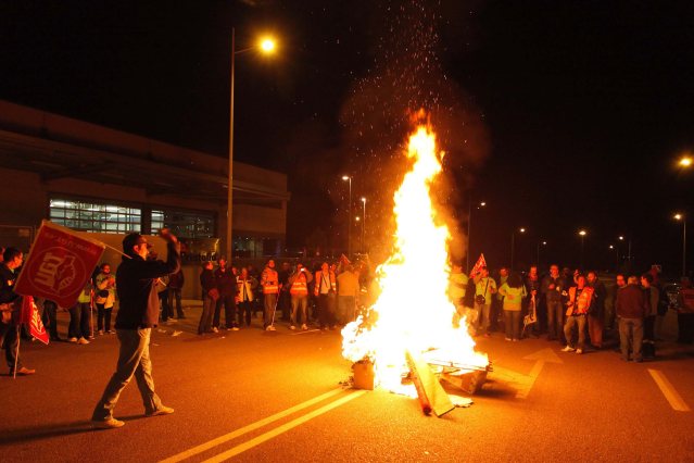 Disturbios por parte de los piquetes en una carretera de Barcelona.
