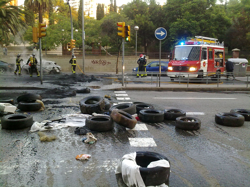 Incendios generados por algunos piqueteros en diferentes contenedores de Málaga.