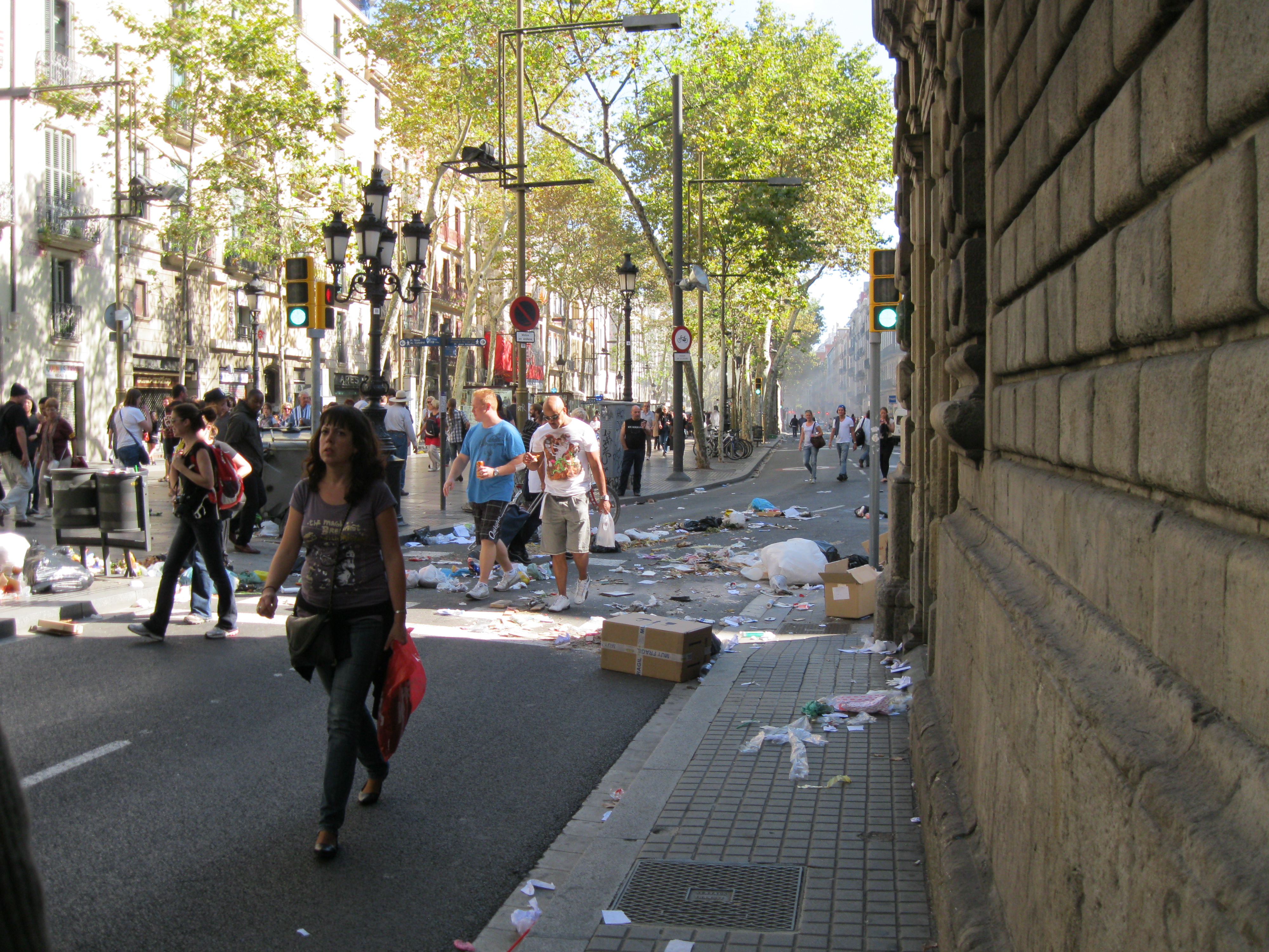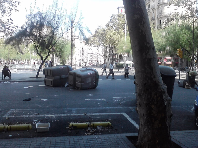 Así quedaron algunas de las calles de Barcelona tras el paso de los huelguistas.