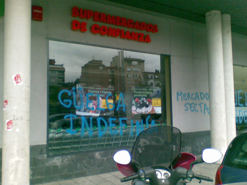 El supermercado Mercadona de La Felguera (Langreo, Asturias) no pudo abrir ante la presión de los piquetes.
