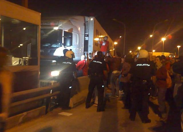 Piqueteros en la carretera de Dolores desde Elche la madrugada del miércoles.