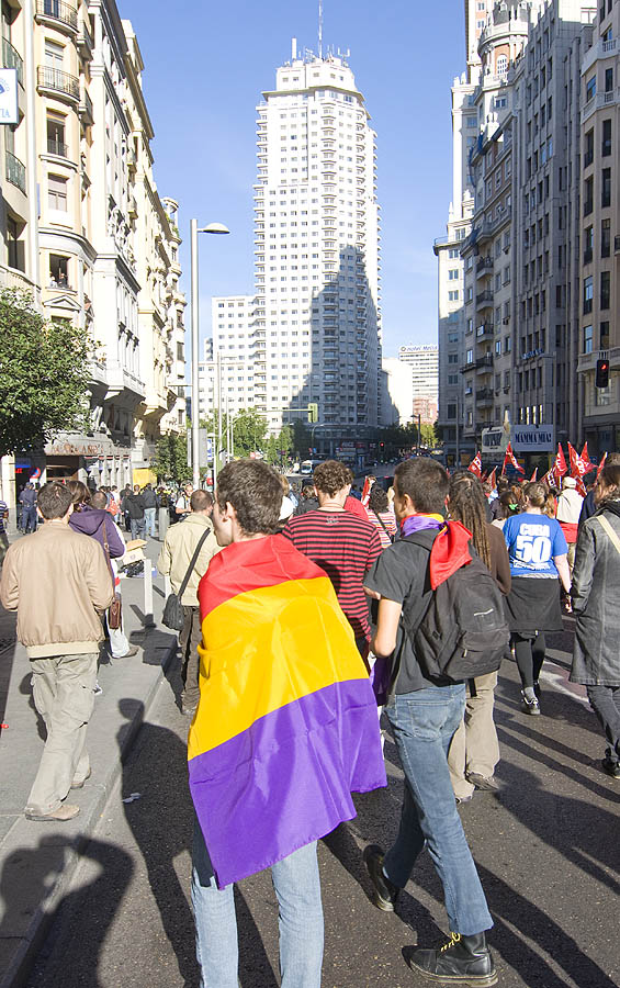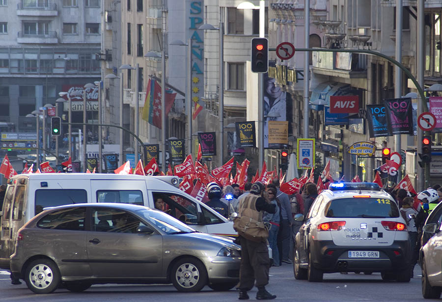 Probablemente nunca la Gran Vía se ha cortado por una manifestación con tan pocos participantes