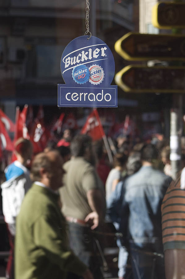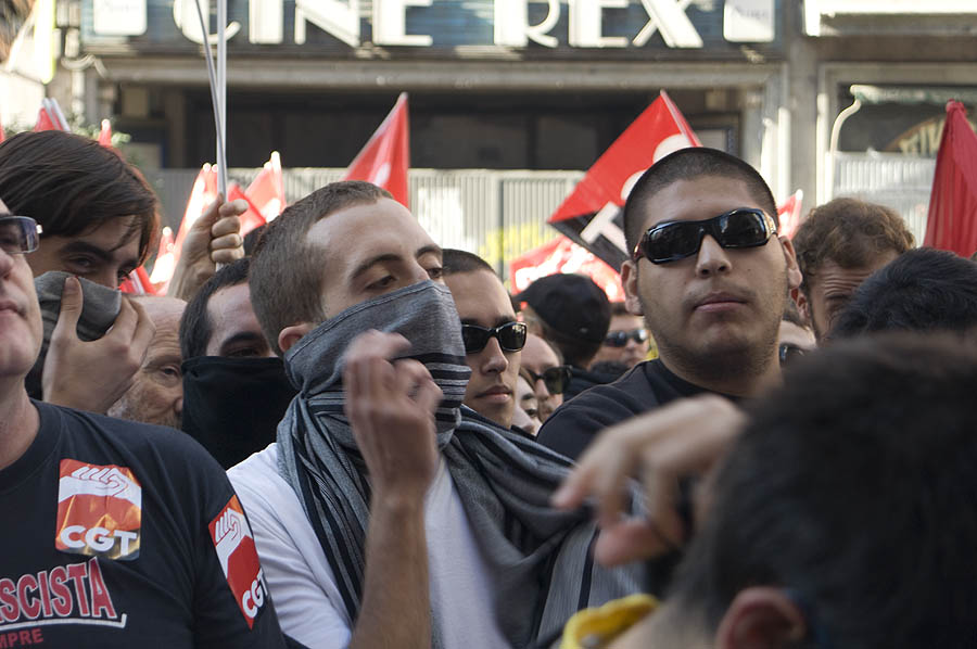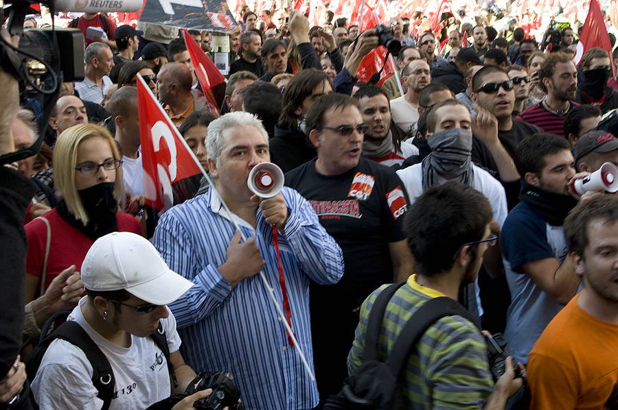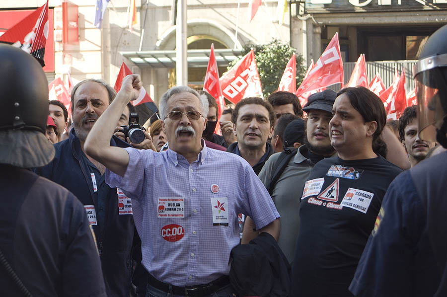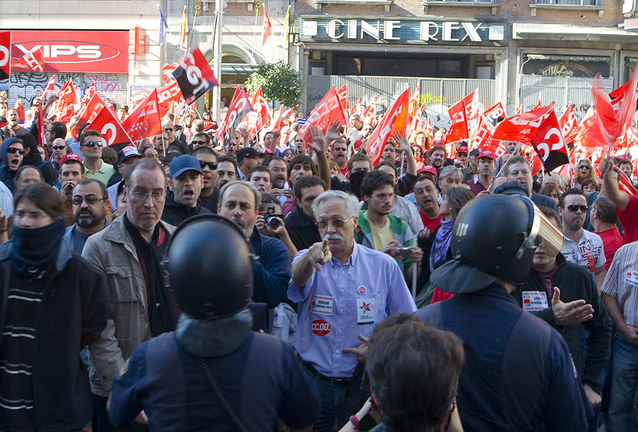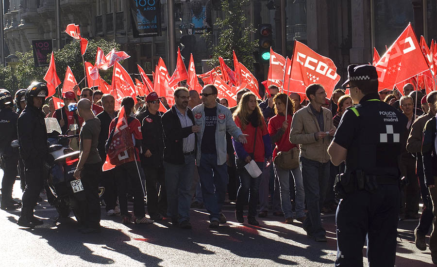 Un "megapiquete" de unos 600 sindicalistas recorre la Gran Vía increpando a los trabajadores y obligando a cerrar comercios. Vea todas las demás fotos de la huelga »