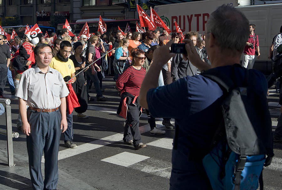 Un visitante oriental se fotografiaba así ante la astracanada sindical