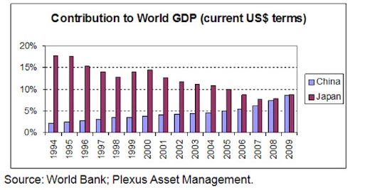 Por último, la pregunta es cuánto supondrá la crisis japonesa en el conjunto de la economía mundial. Los cálculos de los analistas sitúan la cifra en el 0,5% del PIB global, aunque el impacto en el crecimiento general será aún menor. En este sentido, también influye el crecimiento de otras economías en la última década. Japón sumaba más del 15% del PIB mundial en 1994, mientras que ahora apenas supera el 8%.