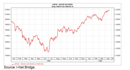 Tras el seísmo de Kobe, el mercado de Tokio perdió un acumulado del 25% en seis meses, aunque un par de años después ya había recuperado (de sobra) todo el terreno perdido.