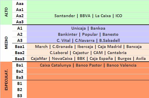 Sin embargo, sorprende que estos dos bancos cuenten con un rating inferior al de algunas cajas de ahorros cuya solvencia es más que dudosa, sobre todo si se tiene en cuenta el reciente diagnóstico del Banco de España. De hecho, la agencia parece no considerar que una de cada dos cajas corre el riesgo de ser nacionalizada en los próximos meses para poder cumplir con los nuevos niveles de capital exigidos por el Ministerio de Economía.