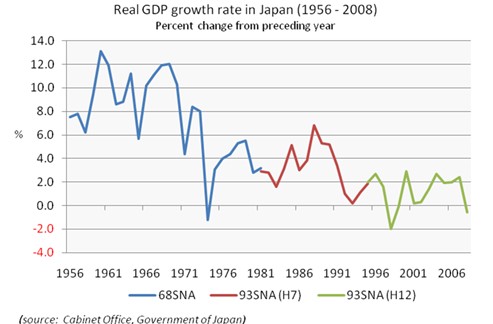 Japón lleva por el momento dos décadas consecutivas de estancamiento económico que China ha aprovechado para adelantarle en PIB. La deflación crónica, un yen fuerte que dificulta las exportaciones, una demanda doméstica que ya no es lo que fue y el índice Nikkei 225 todavía muy por debajo de los máximos alcanzados a finales de los ochenta reflejan que la economía nipona llevaba tiempo en muy mal estado, aunque algunos empezaban a ver signos de recuperación.